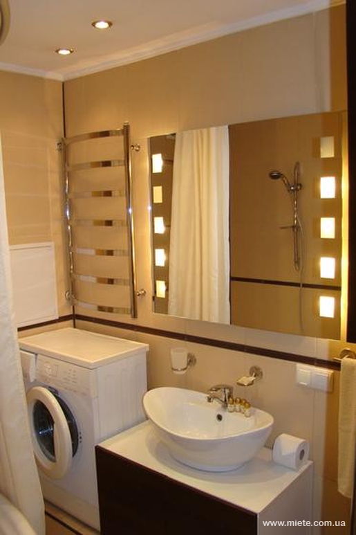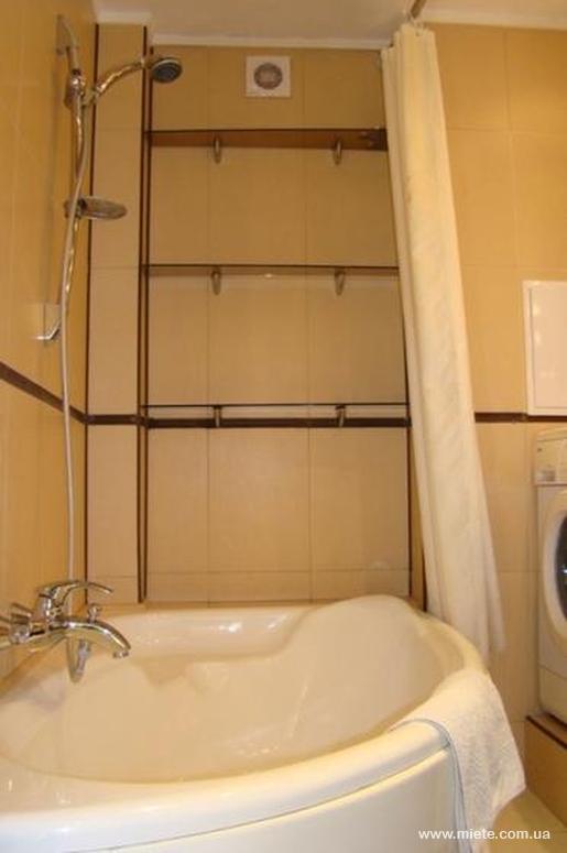 Ванная комната - угловая ванна со стойкой для душа, умывальник, зеркало, стиральная машина автомат, фен, полотенца (банное + лицевое на одну персону), индивидуальный коврик для ног, шампунь, гель для душа, жидкое мыло.