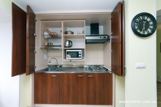У квартирі є все найнеобхідніше для комфортного проживання: двоспальне ліжко і диван, ванна, кухня, стіл кухонний і письмовий, велике дзеркало, кондиціонер, телевізор, холодильник, мікрохвильова піч, фен, праска і прасувальна дошка, бойлер, а також весь кухонний посуд!