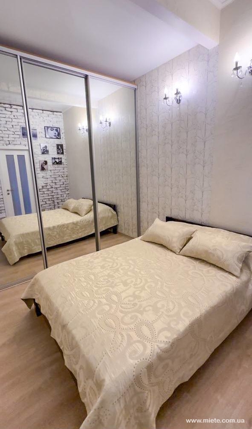 Апартаменти в Аркадійському палаці на березі моря у центрі найкращого курортного району Одеси, Аркадії. Поруч пляжі, нічні клуби, торгові центри, аквапарк і все, що необхідно для відпочинку. Гості можуть комфортно розміститися у трьох окремих спальнях, відпочити на відкритій терасі з літніми меблями та у великій вітальні. В апартаментах є два окремі санвузли, ванна кімната та душова. Є вся побутова техніка, включаючи духовку, посудомийку, пральну машину, два кондиціонери, дві плазми, Wi-Fi.